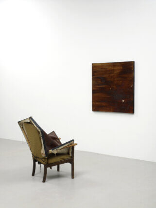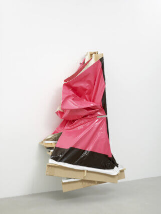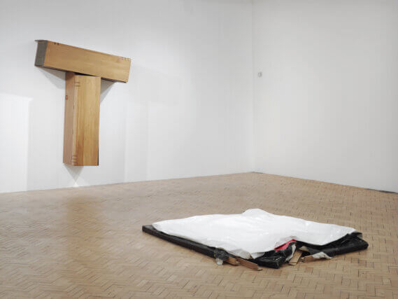 De la Cruz questions painting’s solemn and authoritative status, tearing, crushing and breaking canvases and stretchers. Titles such as Homeless, Ashamed or Deflated reveal the work’s human qualities and emotions. De la Cruz’s work is not an outpouring of anxiety, but an expression of an inexhaustible determination in a hostile world, where even the gallery seems unsympathetic; crushing and trapping works in doorways or corners.
