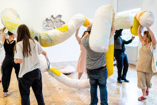 To download, visit the App Store or Google Play and search Bloomberg Connects. The free digital guide gives you access to additional content, audio, video and curator tours – as well as videos of artists talking about their work.